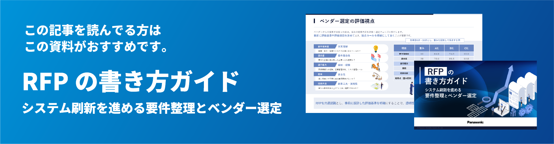 特に複数のベンダーから提案を受ける場合には、RFPの整備が導入成功のカギを握ることでしょう。