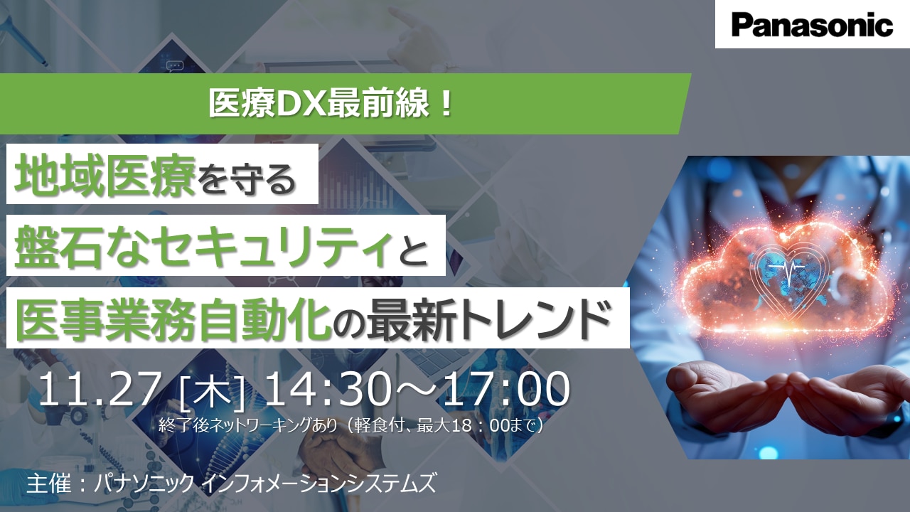 医療現場を支える事務部門では、人手不足を背景とする多様な事務作業の効率化や、ランサムウェア被害の増加に端を発するサイバー攻撃への備えといった課題が山積しています。